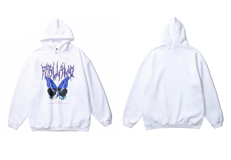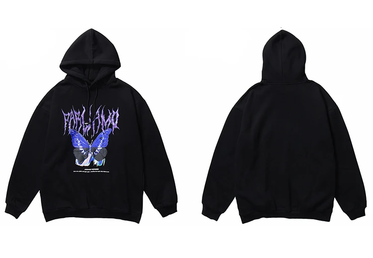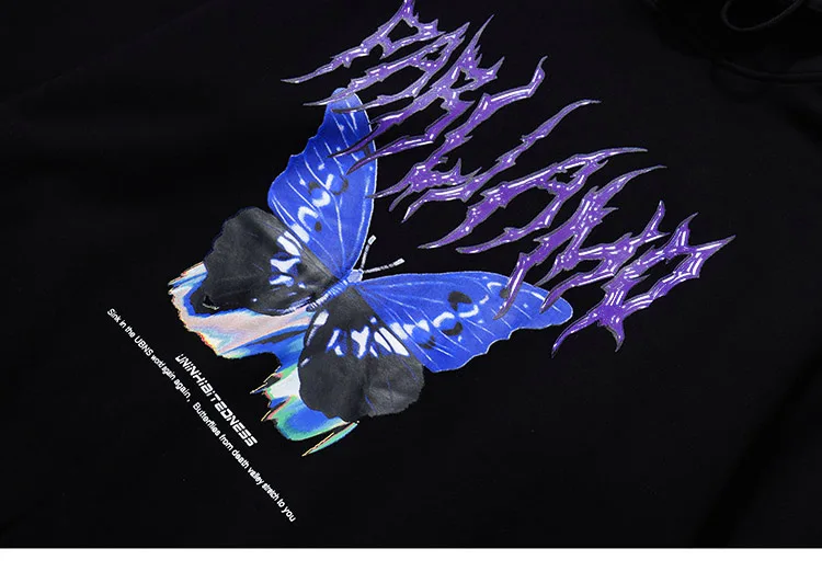 Men Hip Hop Hoodie Sweatshirt Butterfly Streetwear Harajuku Hoodie Pullover Oversized 2025 Autumn Cotton Hoodie Hiphop Loose